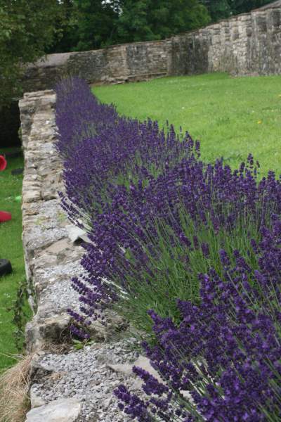 Part of the library border is by the entrance to the library, but there is also a long border behind the library building.