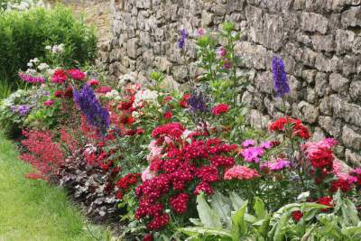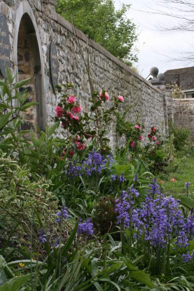Part of the library border is by the entrance to the library, but there is also a long border behind the library building.